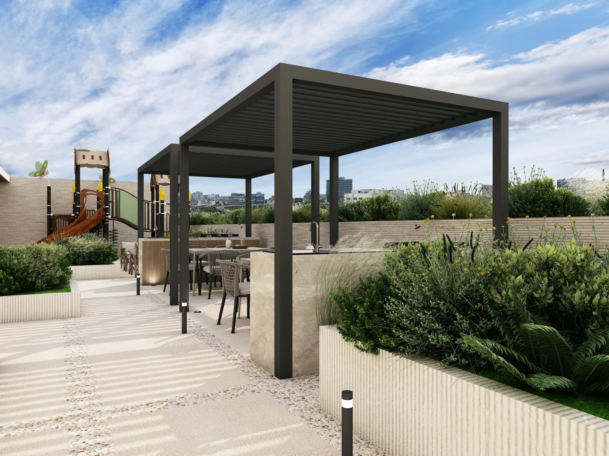 • Roof garden con áreas de asador